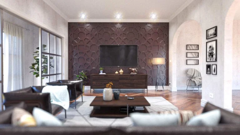 Neste ambiente, o painel modelo STAR foi usado para decorar uma sala de estar. Painel decorativo.